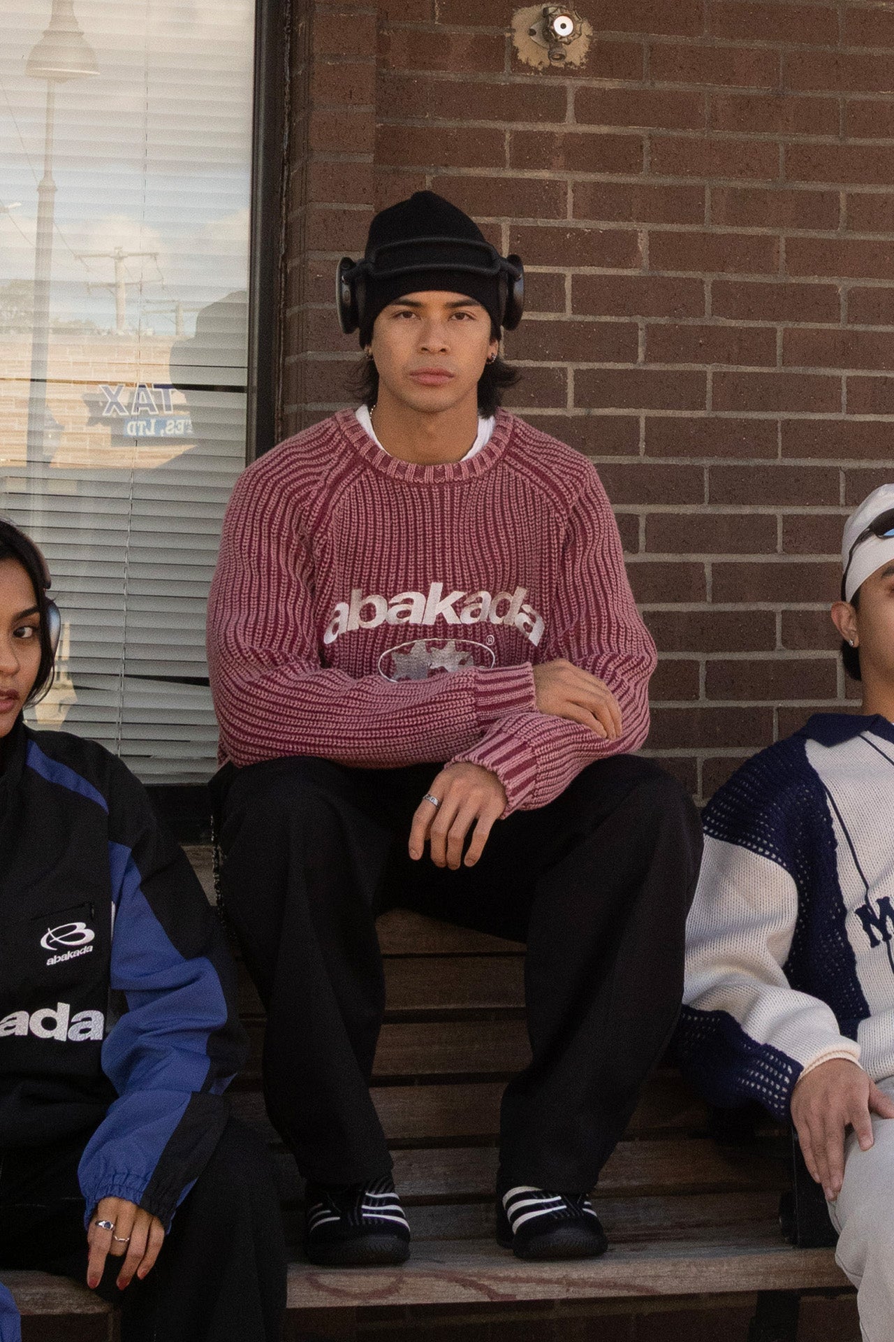 3 STAR FADED KNITTED SWEATER (WASHED RED)