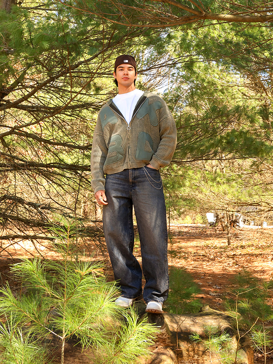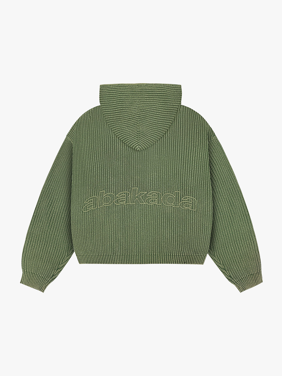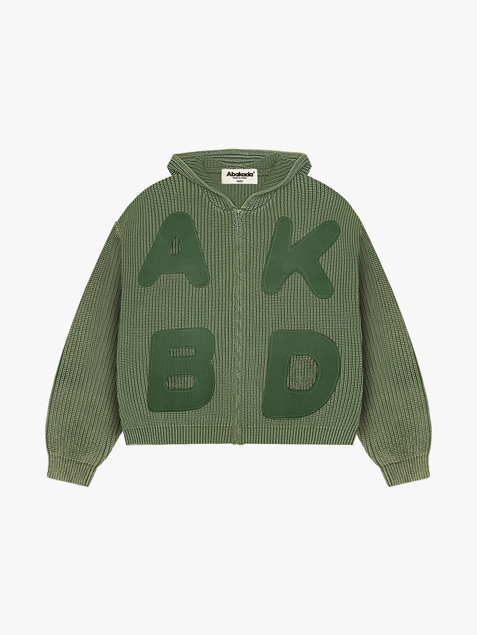 LETTER PATCH KNITTED HOODIE (WASHED GREEN)